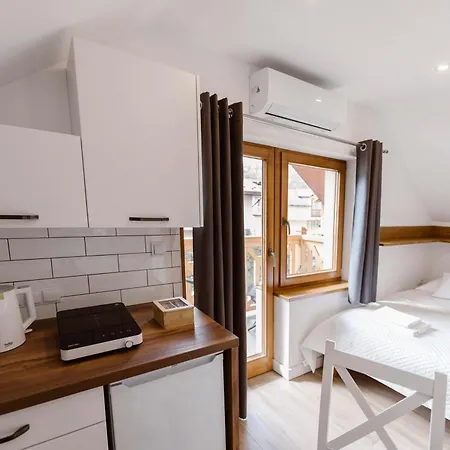 Eine Küchenzeile mit einem Wasserkocher und einem Kühlschrank gehört zur Ausstattung dieses Apartments für Selbstversorger. Gerichte der polnischen Küche werden im Restaurant Restauracja Sami Swoi serviert, das sich ganz nah an diesem Apartment befindet. Die Bushaltestelle Szczawnica Pieniny liegt in nur 550 Meter Entfernung von diesem 15 m^2 großen Apartment.